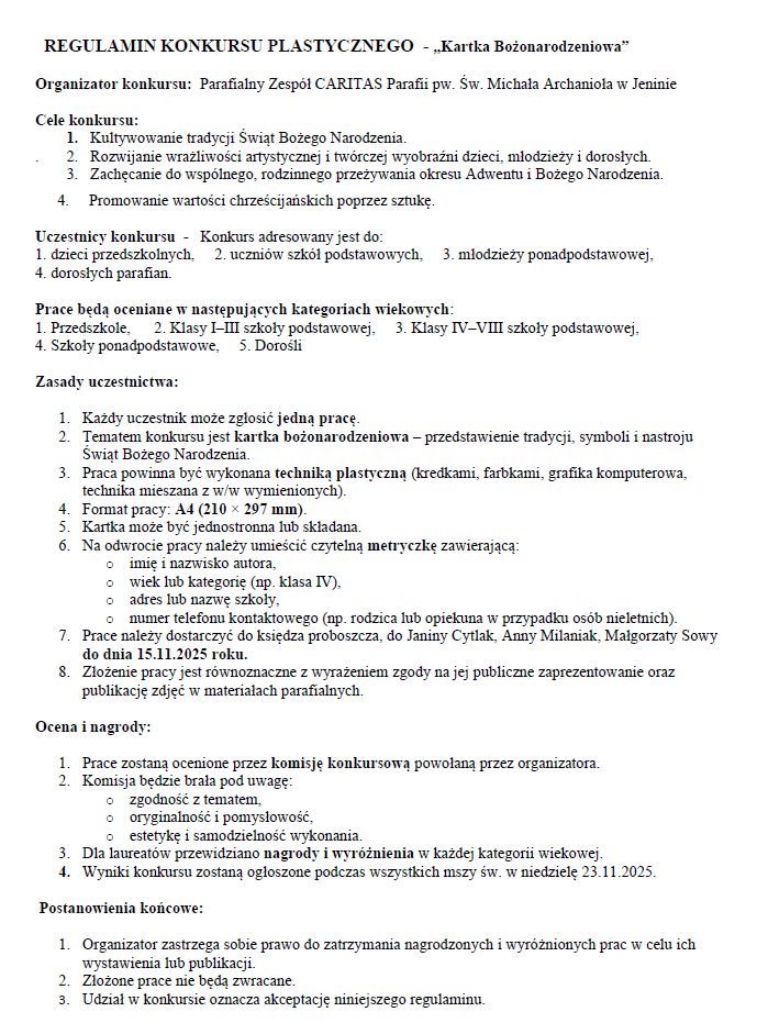 OGŁOSZENIA PARAFIALNEGO ZESPOŁU CARITAS